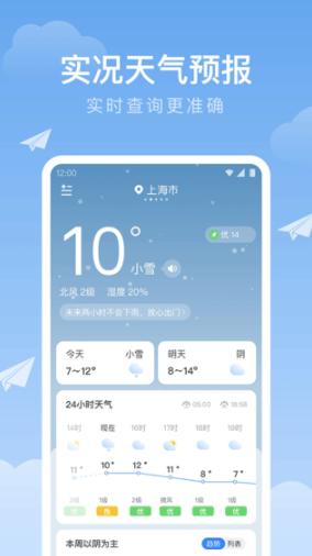 3、实时降雨预报。独有的分钟级降水预报功能,可以精确预测未来降水情况,包括开始时间、持续时长和强度变化。这项功能特别适合需要安排户外活动的用户,帮助避开降雨时段。
