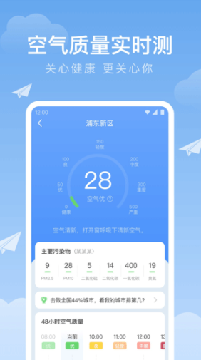 2、空气质量实时看。软件内置专业的空气质量监测系统,可实时显示PM2.5、PM10、二氧化硫等6项关键空气质量指标。除了当前数据外,还能提供未来48小时及15天的空气质量预报,帮助敏感人群提前做好防护措施。数据来源权威可靠,更新及时,让用户随时掌握周边环境质量。
