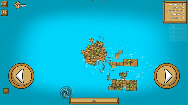 -不断收集各种资源壮大自己的木筏;游戏内设有20多种特殊木板,每种都有独特属性加成,收集特定组合还能激活套装效果。