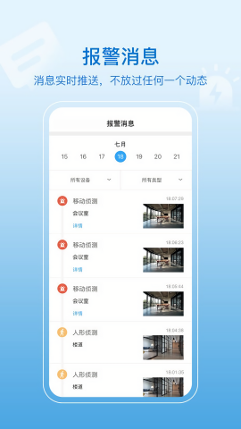 历史录像随时查看:采用先进的视频压缩技术,随时随地记录收藏拍摄到的精彩画面,支持按日期分类管理,想什么时候看就什么时候看。