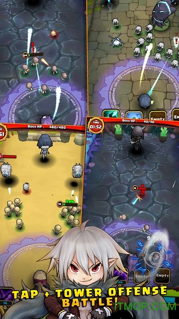战斗系统引入MOBA式的技能冷却机制,三路兵线设计需要玩家精准分配召唤兽种类。长按屏幕可激活暴走模式,召唤兽攻击速度提升300%但会持续消耗体力值。游戏内置连击评分系统,完美combo可积攒觉醒能量,释放全屏清场必杀技时会有震撼的像素特效演出。
