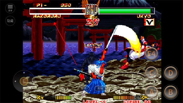 1、玩家下载安装好侍魂2游戏后,打开进入游戏界面,点击投币键后再点击"开始"即可正式进入游戏。