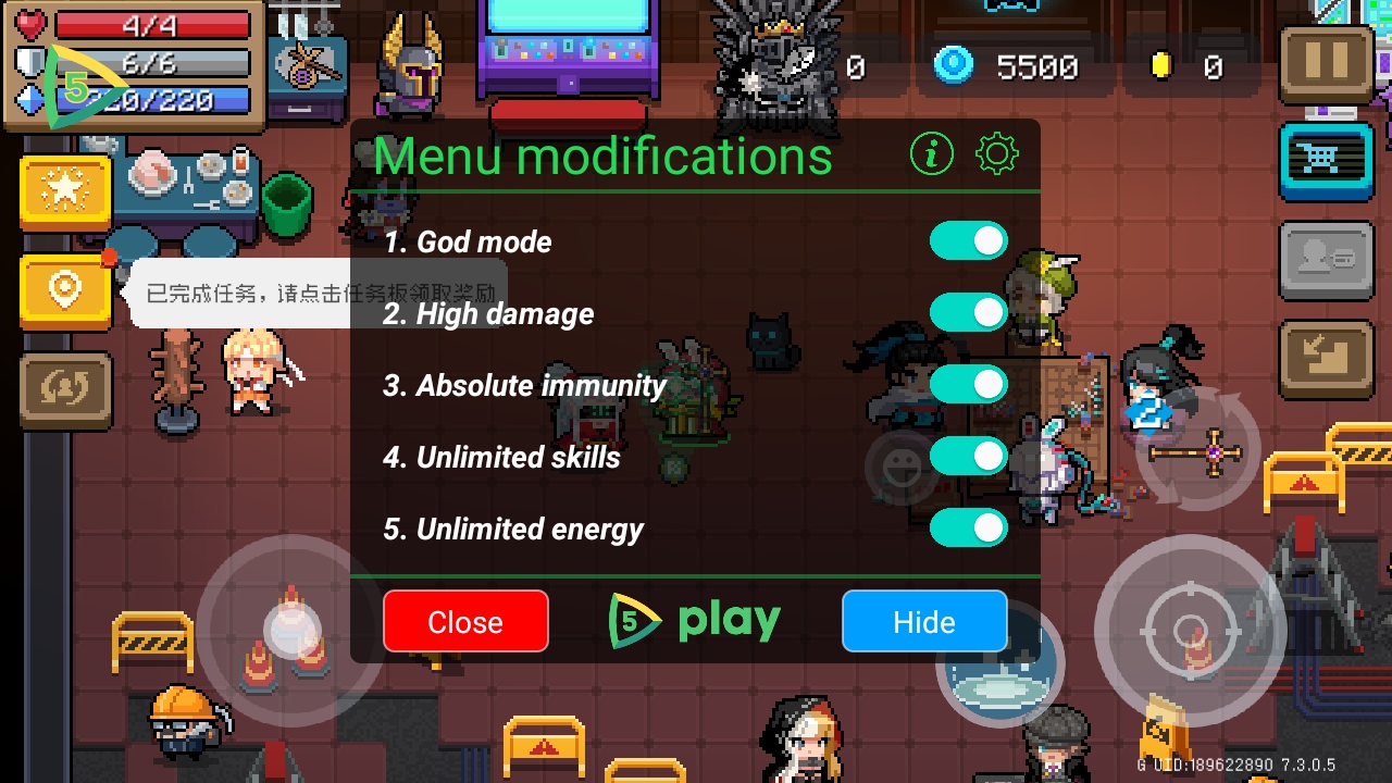 1.这款游戏支持内购皮肤功能,许多玩家反映购买失败,但经过小编实测确认可以正常购买。进入游戏前请确保左侧菜单栏显示正常,若看到数字“5”的图标,点击即可开启全部功能。