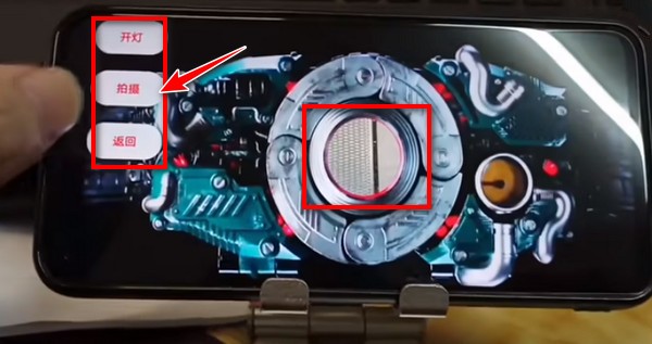 6、点击腰带中央醒目的红色光圈即可启动相机功能,拍摄的照片会自动保存在手机相册的指定文件夹中。您可以用这些照片制作专属的假面骑士纪念相册。