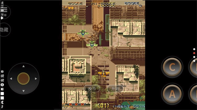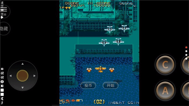5、当战机被击毁时,系统会提示投币续命,玩家可以选择继续游戏或重新开始。