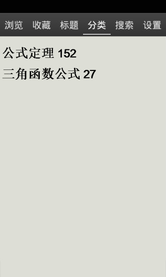 应用内容系统分为两大部分:152条基础公式定理和27条三角函数公式。每个分类都经过科学编排,便于用户快速查找。基础公式部分包含代数、几何等初中数学核心内容,三角函数部分则详细整理了各类三角公式及其应用场景。这种清晰的分类方式让学习更有条理,帮助学生建立完整的知识体系。