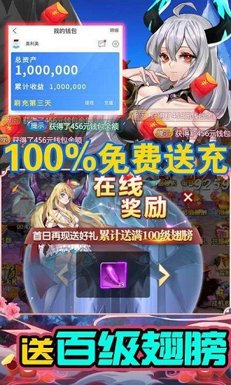 在线福利:首日还有豪华福利,在线就能领超多翅膀进阶道具,直接助力升百级翅膀!战力飙升不是梦~