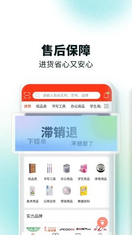 1、打造最全面的文具采购平台,商品种类覆盖学生、办公、美术等各个领域,满足不同场景需求;