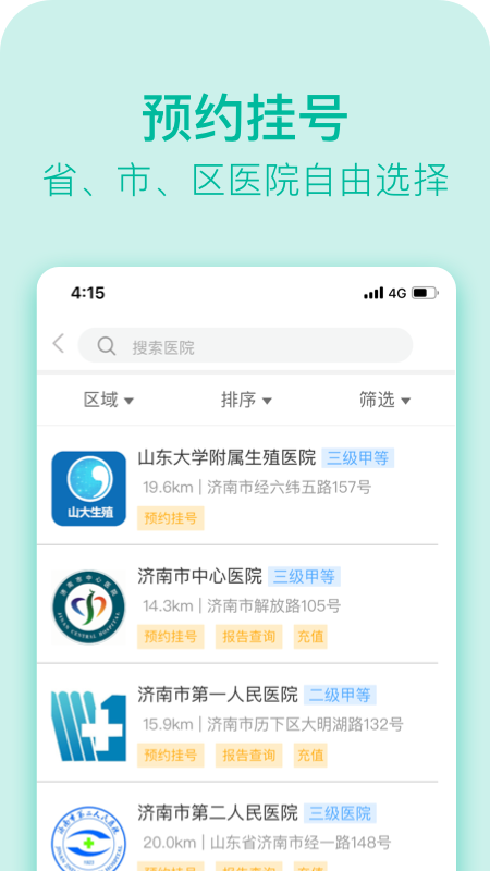 1、覆盖济南各地区医疗机构,整合全市医疗资源,用户可轻松预约同城医院,支持跨院区转诊服务,实现医疗资源的优化配置。