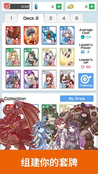 套牌:一组战斗套牌需有12张卡牌。游戏提供智能推荐系统,帮助你快速组建强力套牌,还能保存多套预设方案;