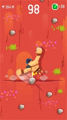 2、游戏操作,只需要根据游戏提示,点击屏幕,让玩家角色抓住合适的石头,往上进行攀登。简单直观的操作方式让新手也能快速上手,但想要成为攀登高手,需要掌握精准的时机判断和节奏控制。