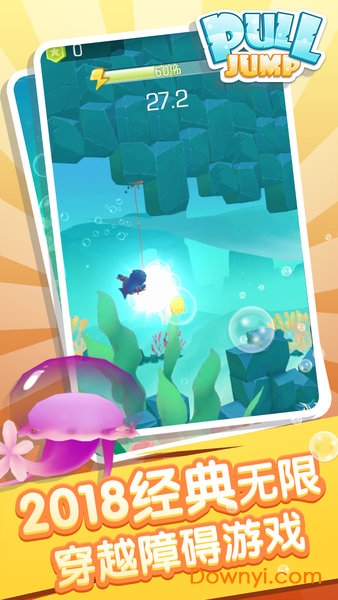 海底捞pulljump(简称PJ)是一款极具创意的休闲益智游戏,玩家需要通过精准的指尖操作来控制角色在海底世界中穿梭。游戏采用独特的绳索摆动机制,玩家需要保持角色在空中荡漾的同时,还要巧妙地避开各种障碍物。海底世界中隐藏着大量金币和宝藏等待玩家收集,但一旦触碰障碍就会导致游戏结束。这款游戏不仅考验玩家的反应速度,还需要掌握恰到好处的操作节奏,是一款兼具休闲娱乐与挑战性的精品手游。