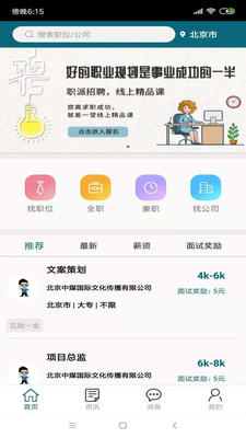 职派招聘APP是北京众巢科技有限公司推出的创新招聘平台,致力于为求职者和企业提供高效便捷的对接服务。与传统招聘软件不同,该平台首创15秒短视频求职功能,让求职者通过简短视频快速展示个人优势,同时推出"面试有奖"机制,为参与面试的求职者提供现金奖励。平台依托800万海量简历数据库和智能算法,实现人才与岗位的精准匹配,大幅提升招聘效率。无论是求职者寻找理想工作,还是企业招募合适人才,职派招聘都能提供专业、智能的一站式解决方案。