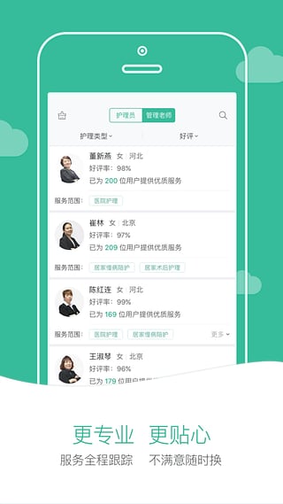4、通过护理员来查找服务:创新"以人找服务"模式,用户可先选择信任的护理员再查看其服务项目,特别适合需要长期固定护理的家庭。