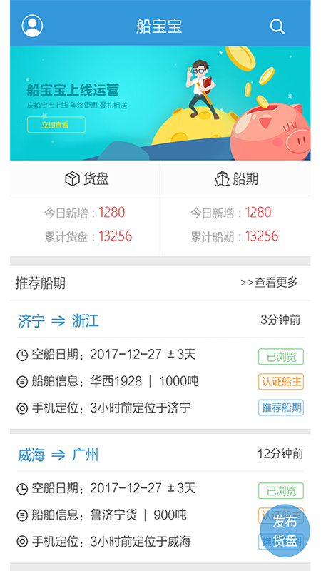 船宝宝app是由济宁市承航物流有限公司精心打造的一款专注于海上运输服务的智能平台。这款创新性应用通过数字化手段重构传统航运模式,为用户提供高效便捷的运输解决方案。货主可以轻松发布货运需求,系统基于大数据算法智能匹配最优船只资源;船东则能实时获取精准货源信息,实现业务对接零距离。平台采用先进的地理定位和智能调度技术,有效解决行业信息不对称痛点,显著降低物流成本。无论是大宗货物运输还是紧急货运需求,船宝宝都能提供专业可靠的服务支持,真正实现"让航运更简单"的服务理念。