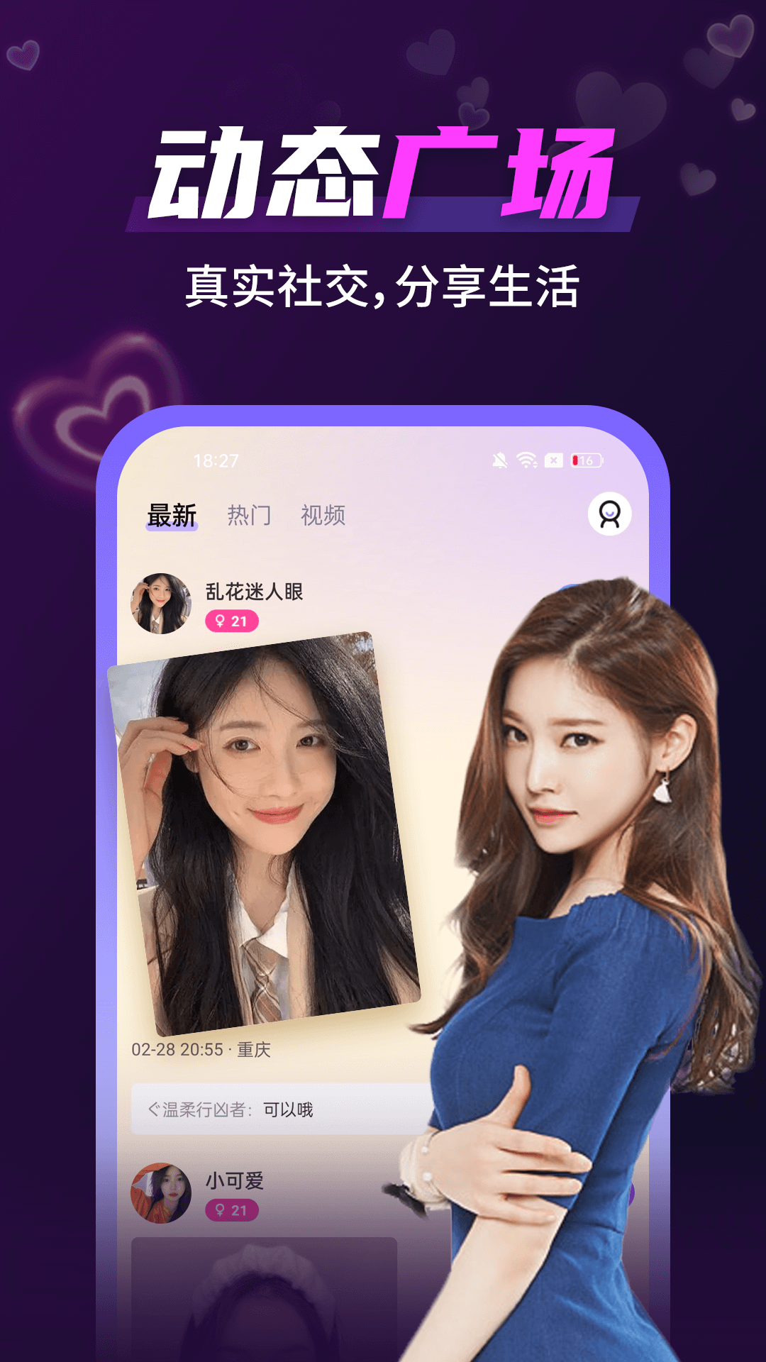 2、全新的互动交友模式,包含视频速配、语音聊天室等创新功能,在这里受到很多人的欢迎,用户了解也方便;