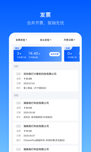 酒店订单直接开票,支持多订单合并开票,大大方便您报销发票流程。系统会自动识别同一企业的多笔消费记录,生成一张汇总发票,避免了传统报销需要整理多张小票的麻烦。财务人员审核时也能一目了然,显著提升报销审批效率。