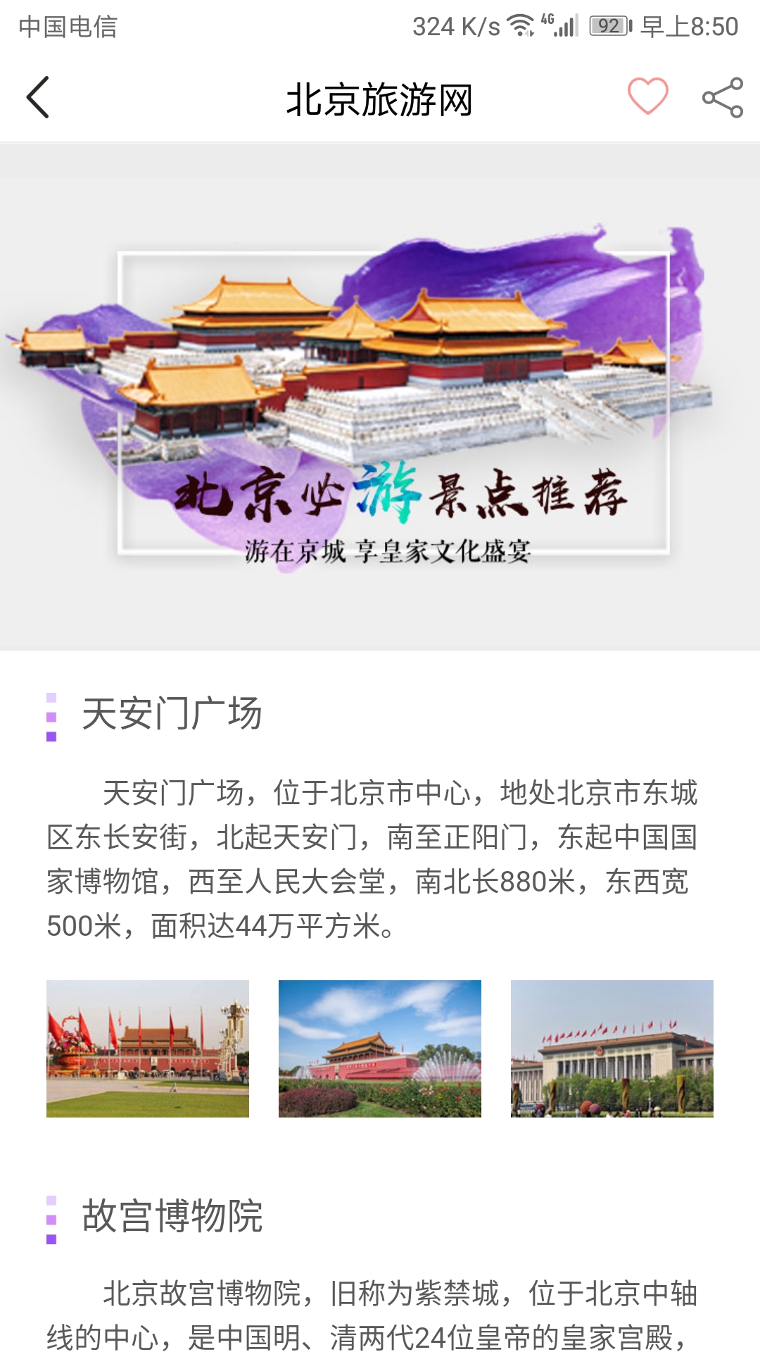 通过"i游北京"APP,游客可以享受北京旅游网提供的独家门票优惠,以更实惠的价格游览故宫、颐和园、长城等著名景点。APP不仅支持在线购票、预约参观,还能根据游客的兴趣推荐特色游览路线,让您以最便捷的方式饱览北京的历史文化景观和现代都市风貌。