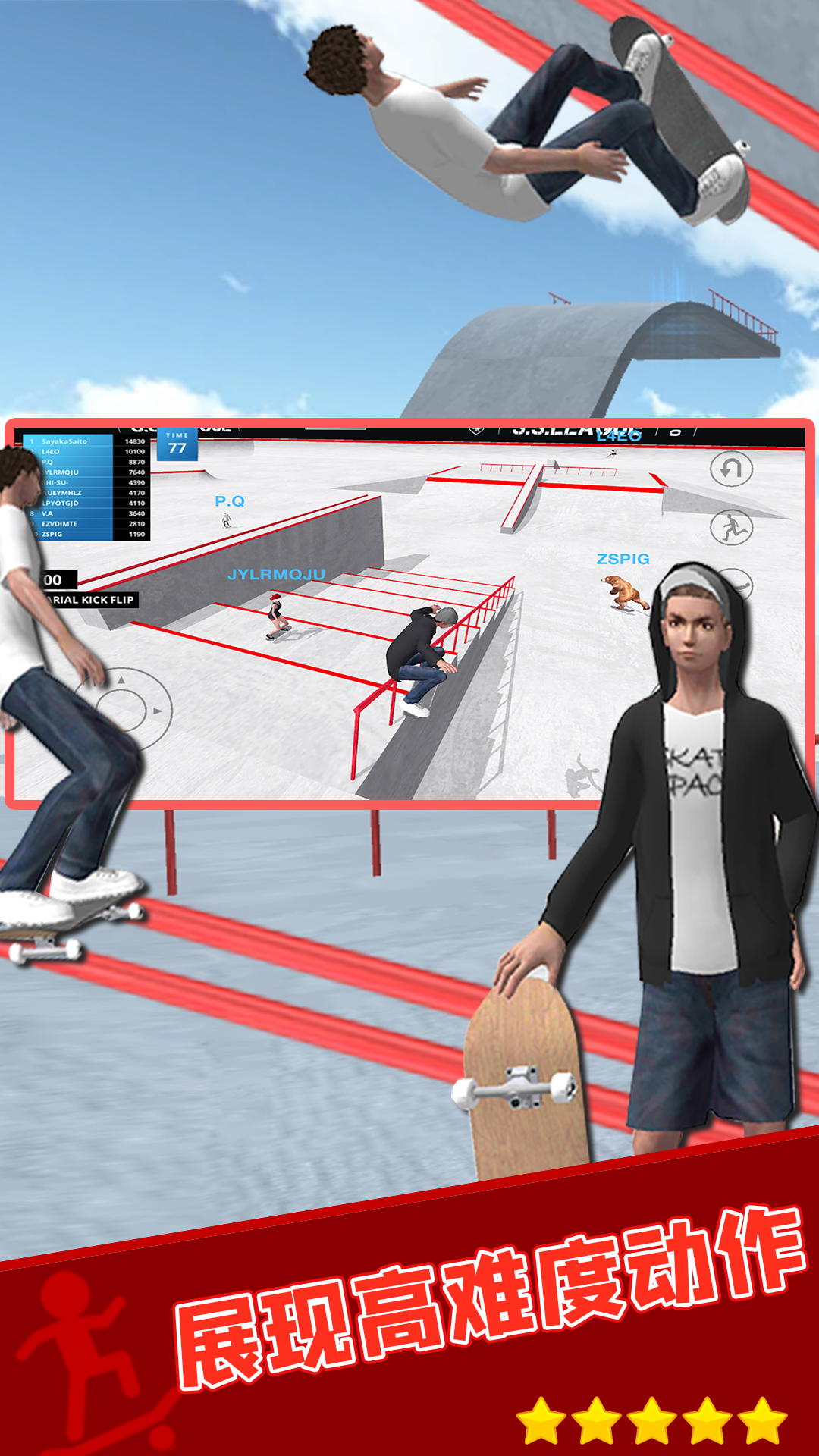 这款游戏专为滑板爱好者和想要学习滑板的朋友精心打造,完美模拟了真实滑板运动的每一个细节。游戏中提供了丰富的滑板场景和多样化的挑战任务,让玩家能够安全地体验各种高难度动作。从基础的滑行到复杂的翻转技巧,游戏都提供了详细的教学指导。在这里,你可以尽情尝试各种危险动作而不用担心受伤,还能结识志同道合的滑板爱好者,共同进步。