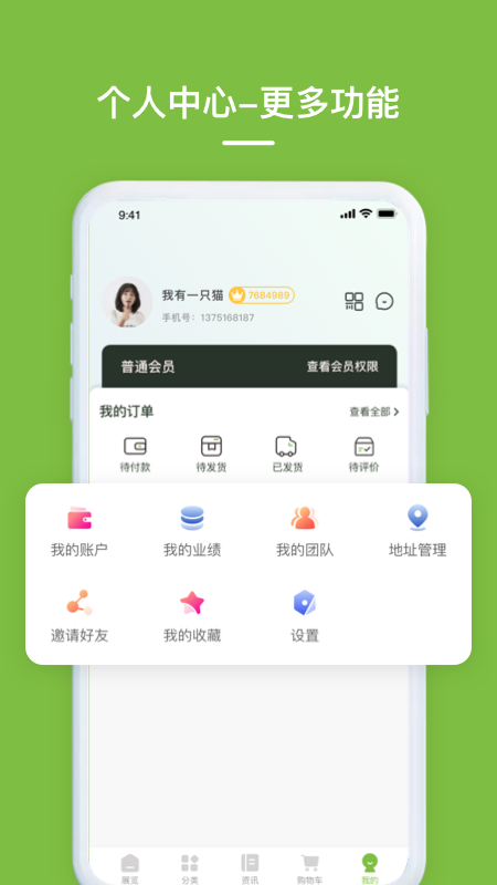 4、个人中心---整合订单管理、会员积分、优惠券等多种功能,为用户提供个性化的购物体验。