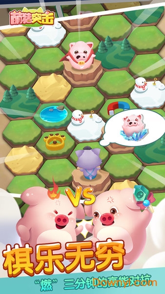 萌猪突击手游是一款充满欢乐与策略的休闲对战游戏。游戏采用清新可爱的卡通画风,将一群呆萌的猪猪打造成游戏主角,为玩家带来轻松愉快的游戏体验。核心玩法采用创新的战棋对战模式,玩家需要巧妙利用棋盘格中的道具和地形,指挥猪猪们展开激烈对抗。无论是3分钟的快速对决,还是深度的策略博弈,都能让玩家感受到独特的竞技乐趣。丰富的角色收集、个性化的装扮系统,以及多样化的对战模式,让每位玩家都能找到属于自己的游戏乐趣。