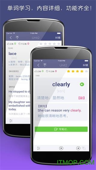 - 每个单词都配有标准发音,支持录音对比功能,让您及时发现发音问题,还可以添加个性化笔记加深记忆;