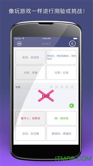 - 每课学习后都配有智能测试,帮助巩固记忆,针对难记的单词可以设置重点复习;