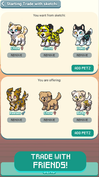 像素宠物Z开创了宠物模拟游戏的新纪元!在这个充满活力的像素世界里,你将遇见会撒娇的布偶猫、活泼的柯基犬等超过50种萌宠。通过实时互动系统,宠物会对你的抚摸、喂食做出真实反应——摇尾巴、打滚或是蹭手心。特别设计的遗传基因系统让繁殖玩法更具深度,两只宠物交配后可能诞生拥有父母特征的稀有品种。你还可以在社区交易市场展示自己培育的宠物,结识志同道合的饲主朋友。