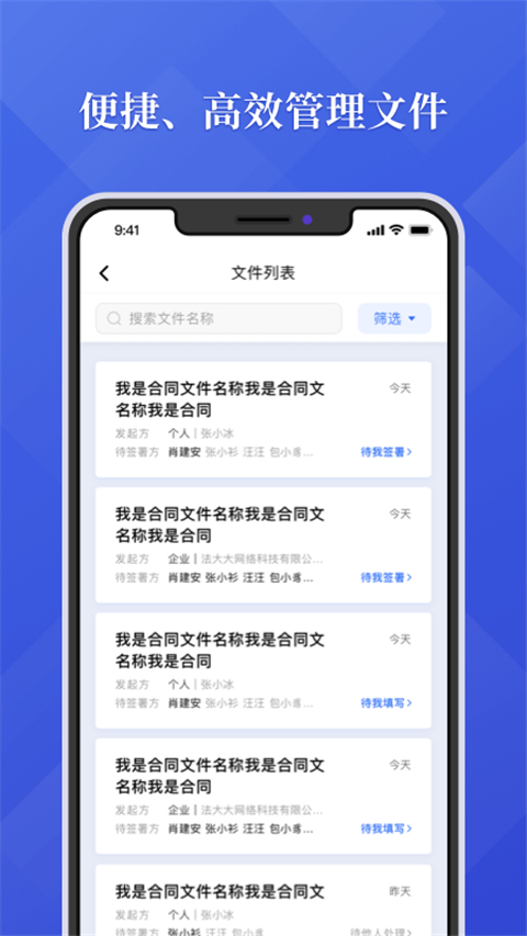 1、便捷:告别传统纸质合同的繁琐流程,用户可通过手机或电脑随时随地进行合同签署、查阅和管理,大幅提升工作效率。无论是出差在外还是居家办公,都能轻松完成签约,真正实现无纸化办公。