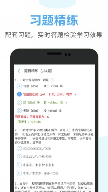2.课文习题精挑细选,做题更方便。每篇课文配套的习题都经过教研团队严格筛选,涵盖基础题、提高题和拓展题三个层次,满足不同学生的学习需求。