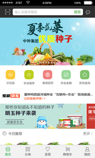 《爱种网》是一款专注于农业领域的综合性电商服务平台,致力于为农民和种植户提供一站式的农资采购解决方案。平台汇聚了种子、化肥、农药、农机等全品类农资产品,所有商品均来自正规渠道,确保品质可靠且可追溯源头。通过高效的物流配送体系和专业的售后服务,爱种网帮助用户轻松解决种植过程中的各类需求,让农业生产更加便捷高效。此外,平台还整合了农业资讯、气象预警、病虫害防治等实用功能,为用户提供全方位的种植支持。