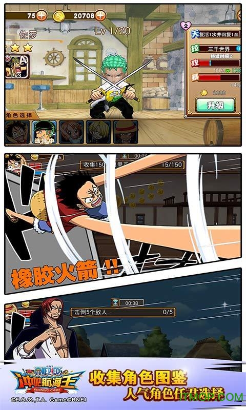 3、游戏中设置了多种强化道具,收集后可以发动角色的特殊技能,如路飞的橡胶果实能力、索隆的三刀流等;