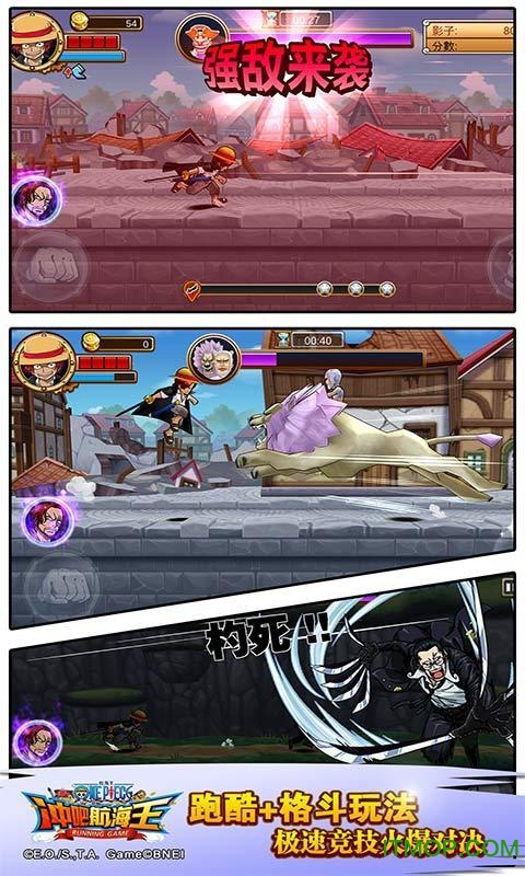 冲吧航海王安卓版是一款以海贼王世界观为背景的跑酷类手游,游戏中玩家可以操控路飞、索隆、娜美等经典动漫角色展开刺激的跑酷冒险。游戏在保留传统跑酷玩法的基础上,创新性地加入了角色技能系统,每个角色都拥有独特的技能效果。玩家需要收集各种强化道具来提升角色能力,在跑酷过程中还能遇到原作中的经典场景和强大敌人,让跑酷过程充满惊喜与挑战。