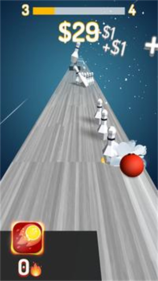 3、游戏完全打破关卡限制,球道会无限延伸,玩家只需专注于击倒保龄球瓶,在挑战中不断提升自己的反应速度和操作精准度;