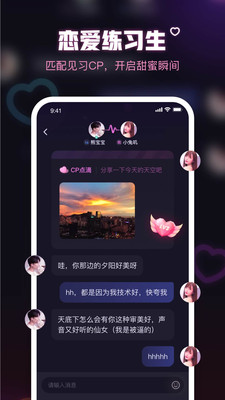 4、匹配专属cp,练习如何恋爱,平台提供专业的恋爱指导,助你提升社交能力。