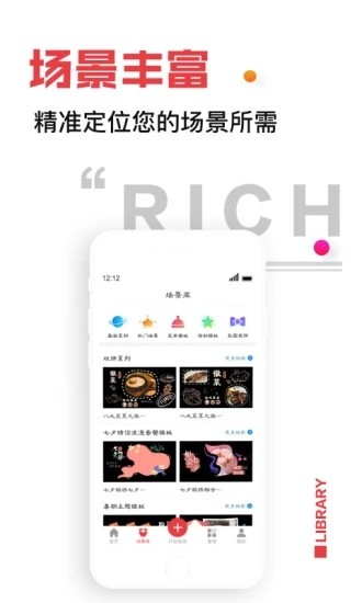 资源库包含餐饮营销、科技感展示、节日节气等数十个分类,满足不同行业和场景的多样化需求;