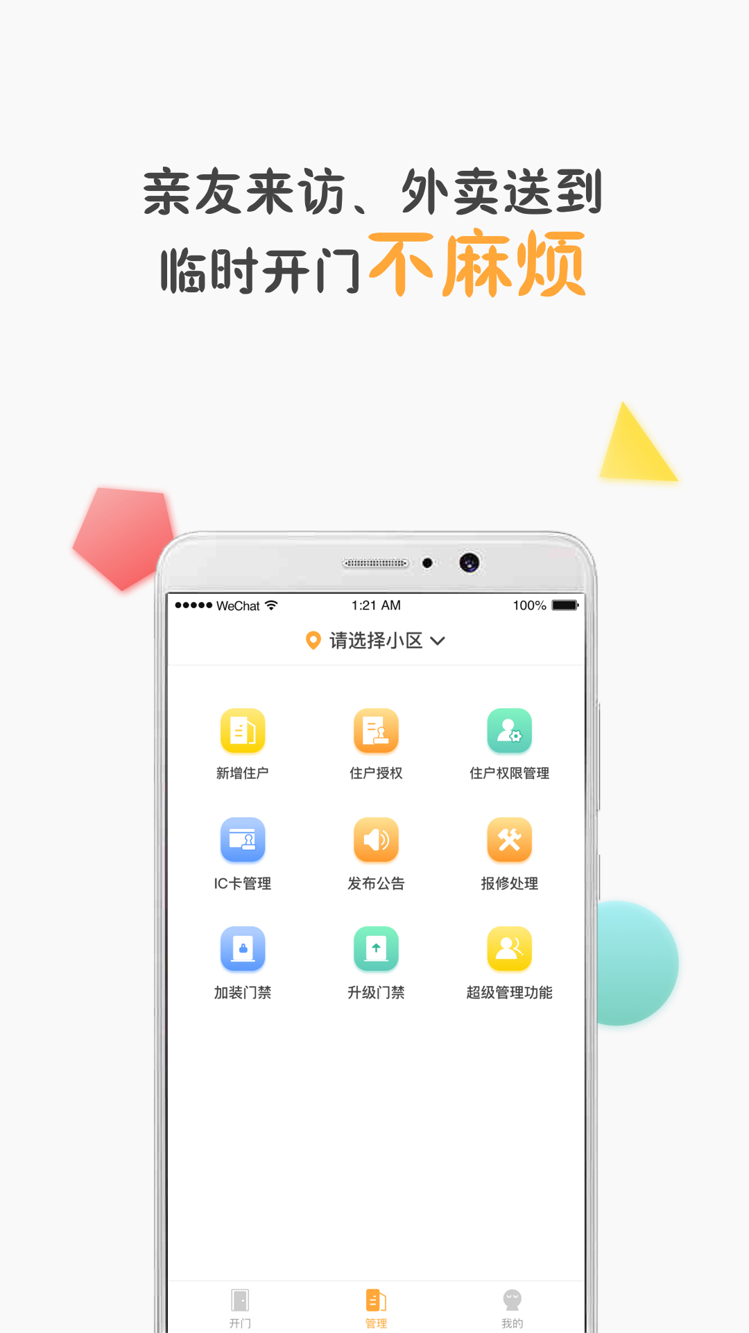 乐客管理端App是一款专为小区物业和城中村房东设计的智能门禁管理应用,旨在为用户提供便捷、高效的开门与管理体验。通过该应用,住户可以轻松实现无钥匙开门,亲友来访或外卖送达时也能快速授权临时通行。告别传统钥匙的繁琐,乐客开门让生活更智能、更安全,同时支持多种门禁管理功能,帮助物业和房东实现高效的小区综合服务,真正实现"便捷开门,智慧管理,快乐生活"的理念。
