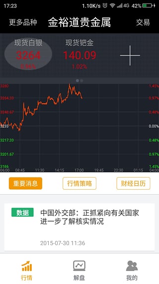 1、集行情、资讯、交易于一体,软件提供现货白银、现货铝、现货铜等市场行情报价数据,覆盖全球主要贵金属市场,确保用户获取最权威的行情信息。同时,软件支持多种技术分析工具,帮助投资者深入解读市场趋势。