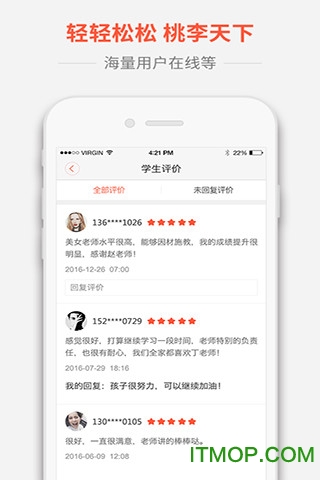 轻轻松松,桃李天下,海量用户在线等。平台拥有庞大的学生用户群体,教师可以根据自身专长筛选适合的学生。完善的评价体系帮助优秀教师获得更多曝光机会。