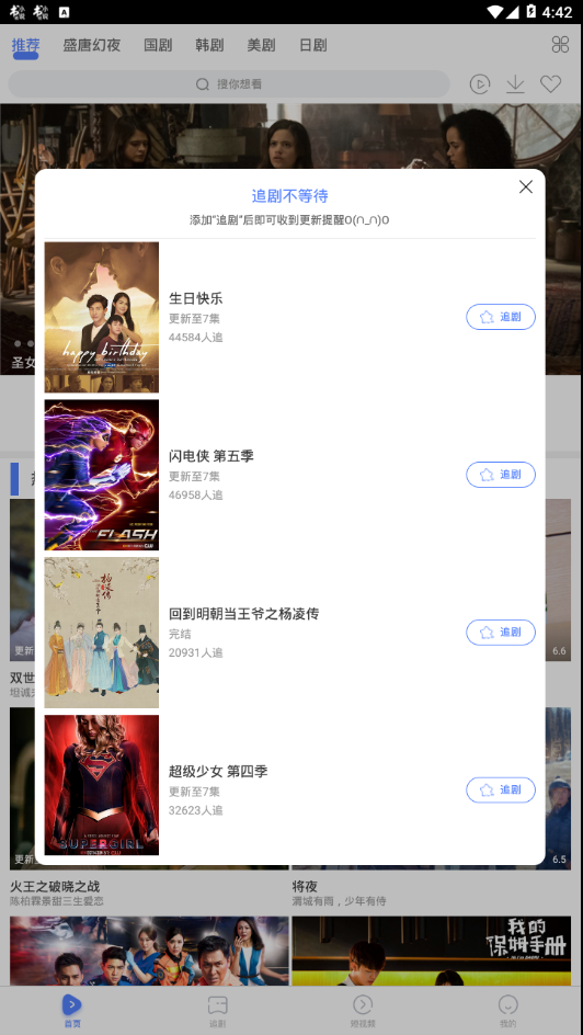 今日追剧APP是一款专为影视爱好者打造的追剧神器,汇集全网热门影视资源,让您随时随地畅享精彩内容。无论是热播国产剧、经典美剧、浪漫韩剧还是精彩日剧,这里都能满足您的观影需求。平台资源丰富,更新及时,高清画质带来极致视觉体验,让您足不出户就能享受影院级观影感受。简洁直观的界面设计,智能推荐系统,让您轻松发现心仪好剧,开启愉悦的追剧之旅。