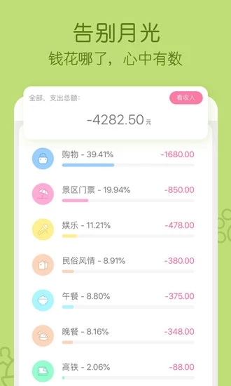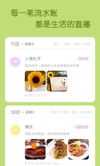=个性账本:提供100+设计师原创封面模板,支持相册导入自定义背景。账本共享功能可实现家人/同事协同记账,特别适合AA制聚餐或团队经费管理。