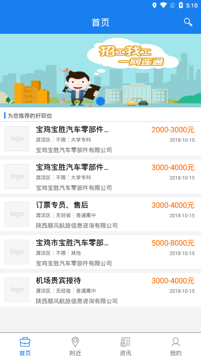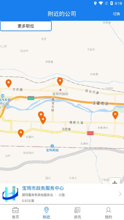 4、基于LBS定位技术,智能显示周边企业信息,方便就近求职;
