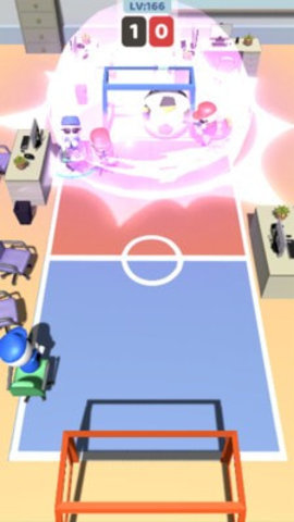 打破常规的办公室足球大战!玩家坐在360度旋转的办公椅上,利用踢球时的后坐力实现漂移走位。只需单指拖动调整角度,松手即可完成蓄力射门,简单操作却能打出精妙的弧线球。比赛过程中要小心同事的突然拦截,更要提防主管扔来的文件夹偷袭。特别设计的"咖啡杯障碍赛"和"打印机弹射"等特殊玩法,让每场3分钟的快节奏对战都充满变数与笑料。