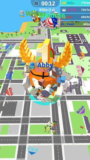 -满足玩家的破坏欲。当你的球体足够大时,可以轻松推倒建筑物、碾压小型对手,体验成为"城市破坏者"的快感。游戏还设计了特殊的破坏特效,让每次碾压都充满视觉冲击力。