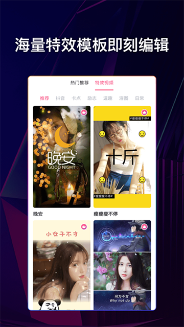 5、【卡点视频溶图K歌视频】精选时下最热门的1000+卡点视频模板,新增智能节拍识别功能,配合创新的多层溶图技术,让画面过渡更加自然流畅,轻松制作专业级音乐短视频。