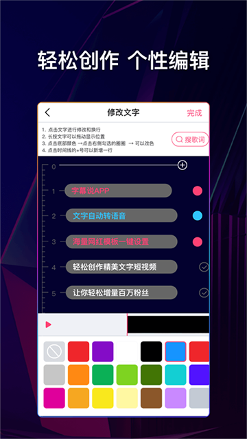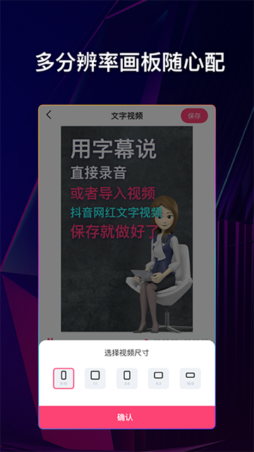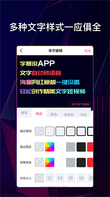 2、【文字动画视频】创新性地将语音或本地视频内容自动转换为动态文字动画,提供20余种文字旋转特效和50多种背景特效组合,每个文字都能独立设置动画参数,打造独一无二的文字视觉盛宴。