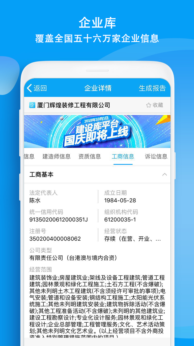 建设库APP是一款专为建筑行业打造的综合性服务平台,集企业信息查询、风险评估、招投标管理于一体。通过该平台,用户可以快速获取全国40多万家建筑企业的资质、业绩、荣誉等核心数据,并利用专业的信用评估模型生成风险报告。此外,建设库还提供个性化招标订阅服务,帮助用户精准捕捉行业商机。作为福建省大司空信息科技有限公司旗下品牌,它深度融合大数据技术与建筑行业需求,为用户提供从信息查询到资金借贷的全链条服务,是建筑从业者不可或缺的智能助手。