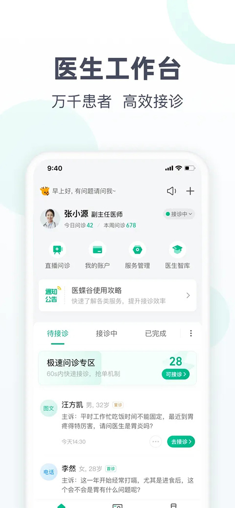1、移动办公体验极致优化,支持离线模式处理简单咨询,网络恢复后自动同步数据,确保医生在差旅等场景下也能持续服务。