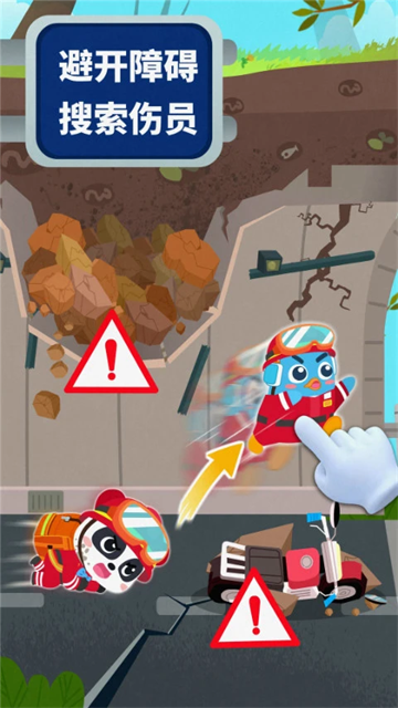 8、面对落石等动态障碍时,快速向上滑动屏幕即可触发跳跃动作,考验孩子的即时反应能力。