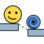 2.在蓝色小球旁边画些线,把小球挤下来:推荐使用带弧度的线条制造滚动效果,直线推挤可能导致小球卡住